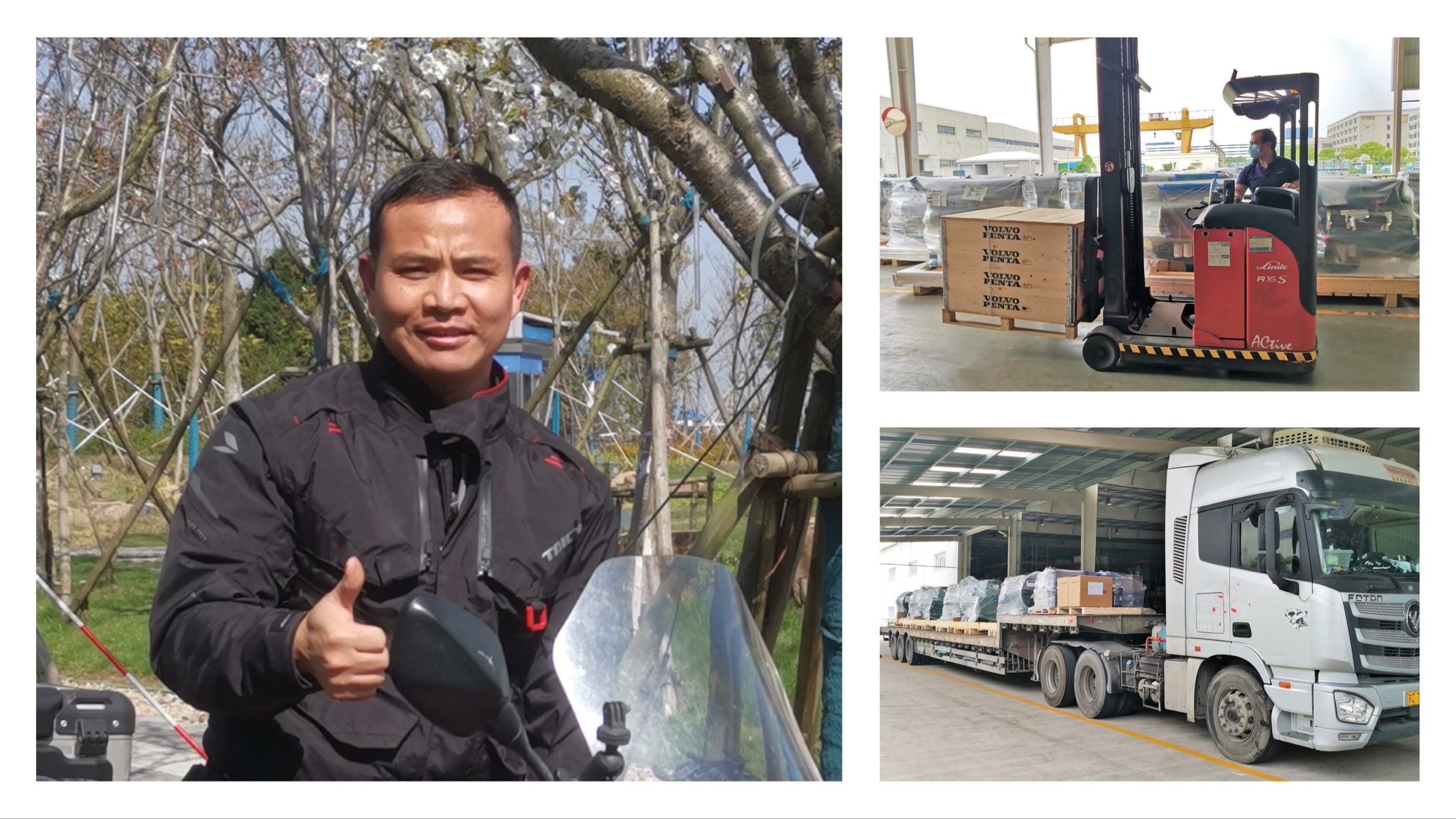 Similar stories were happening at Volvo Penta Lingang site. Huihua Pan, team leader of Material Handler in Warehouse Operations, also dedicated himself to resuming production. The preparation went underway in Penta as early as April 20 following the Shanghai Municipal Guidelines for the Resumption of Work and Production, including the preparation of daily life necessity supplies and Covid prevention materials. On May 5, the production of 7 engines was completed on the first day of resumption. On May 8, the plant received the first customer pick-up after closed-loop production began.